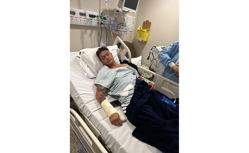 Está tudo bem com os exames de cabeça, não quebrou nada, teve sangramento interno. Porém, quebrou a mão na confusão, algo que nunca aconteceu em 35 anos de profissão.